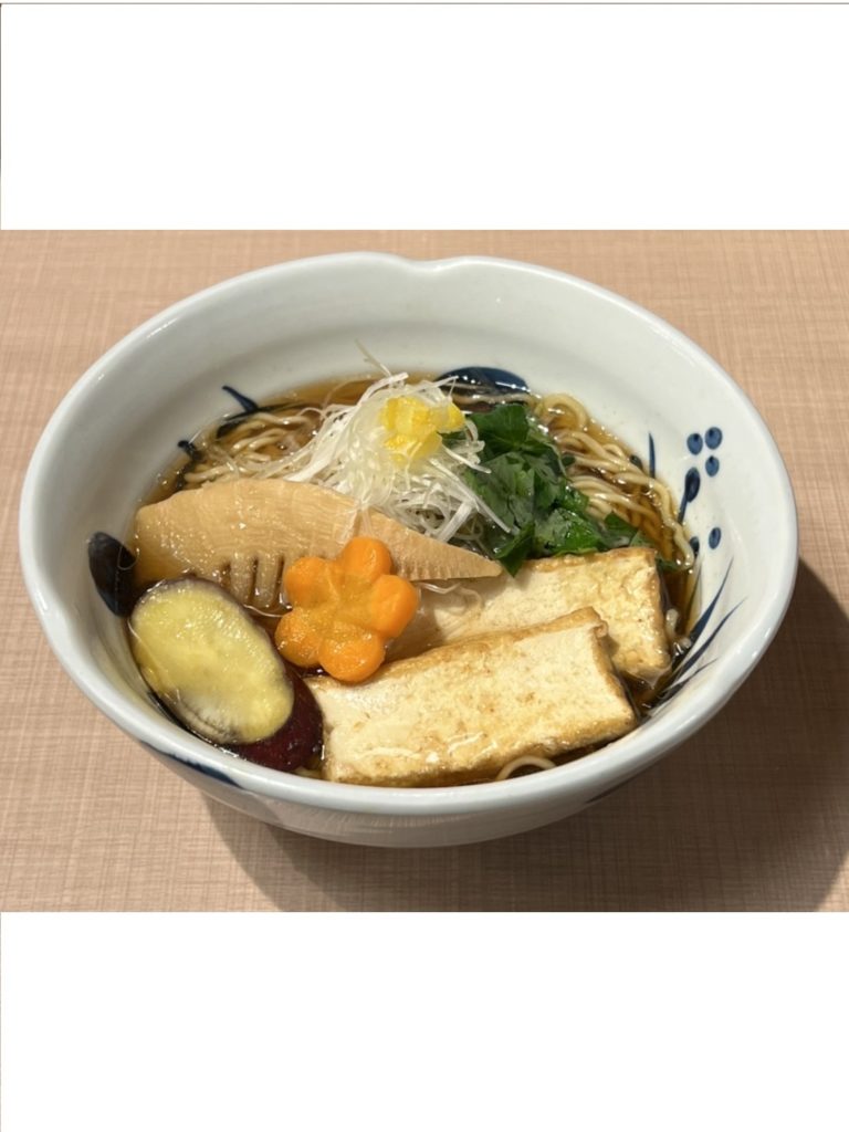 白菜、玉葱、干ししいたけ、昆布、人参の出汁で和風の醤油らーめんに仕上げました。麺は玉子不使用の中細麺を合わせました。動物性不使用ながらしっかりとしたらーめんになっております。三つ葉、ゆずの香りとともにお楽しみください。