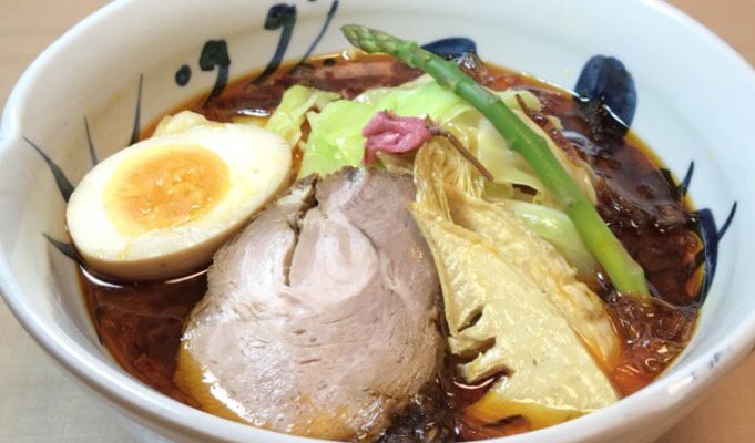 3月26日(火)から季節限定「春野菜の旨辛らーめん」¥950 毎日30食限定 を始めます!具には、今が旬の 春野菜( 春キャベツ、筍、グリーンアスパラ)を使い、スープには 干し海老、椎茸、長葱で作った 当店自家製の具ラー油を かけました。